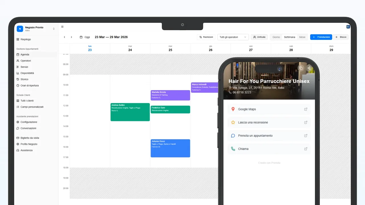 Contatti, orari, servizi e prenotazioni.